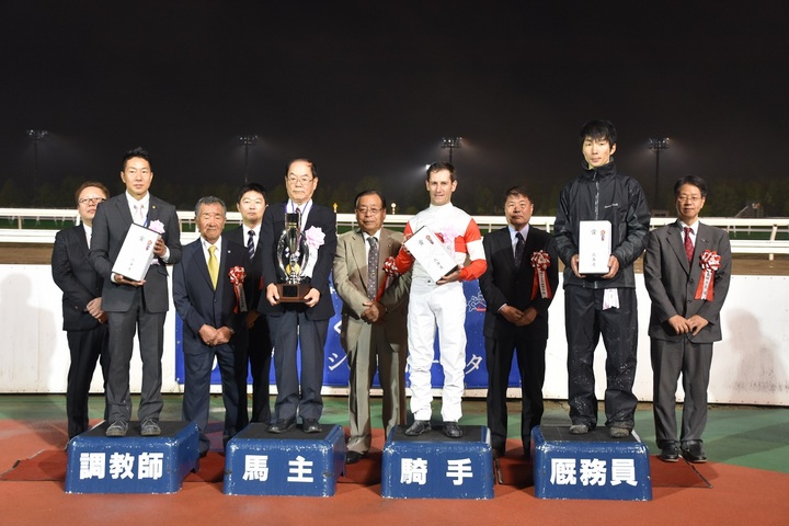 なお、当該競走において同馬及び管理する村山 明調教師は昨年3着からの初優勝、M.デムーロ騎手は初勝利となりました。