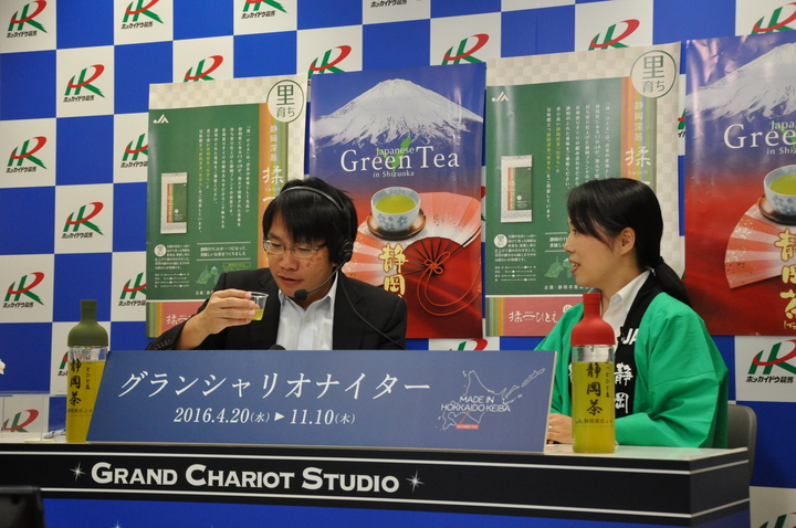 場内では、JA静岡のPRや静岡茶の試飲会を実施したほか、スタジオゲストとして、静岡県農業協同組合中央会 経営指導部 皆倉 純代さんにご出演いただき、静岡茶の生産やお茶の種類について話して頂きました。