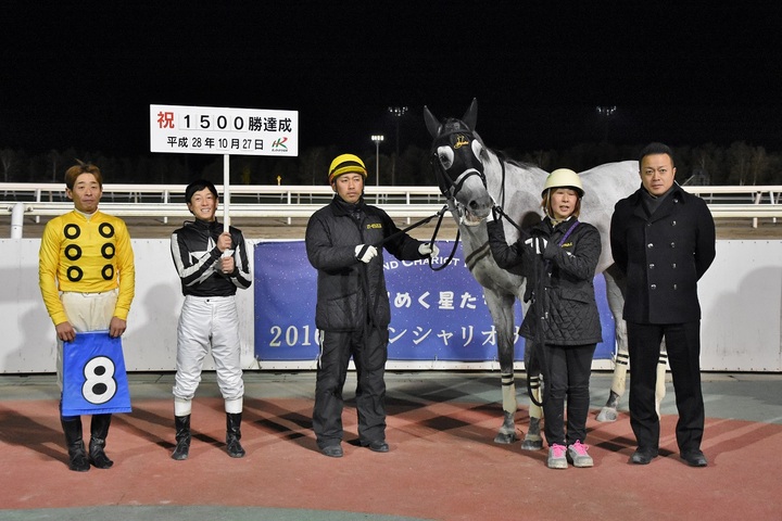 10月27日(木)、門別競馬 第10レースで服部 茂史(はっとり たかふみ)騎手(田中 淳司きゅう舎所属)がクリーンエコロジー号に騎乗し、13,597戦目で地方・中央通算1,500勝を達成しました(ホッカイドウ競馬では現役4人目)。