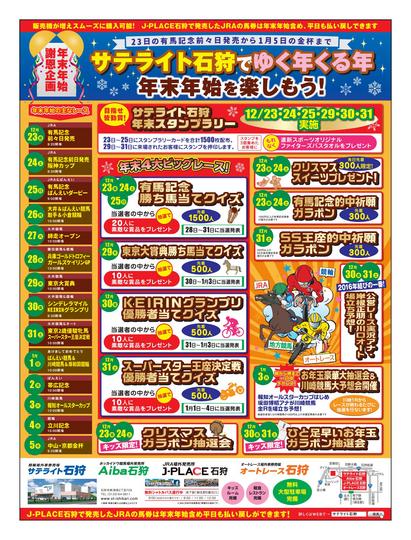 Aiba石狩(サテライト石狩)では、12月23日(祝金)から1月5日(木)まで、年末年始のイベントとして、スタンプラリー・勝ち馬当てクイズ・ガラポン抽選会・場立ち予想会などが実施されます(詳細は下記のリンクからご覧ください)。お近くの方はぜひ足をお運びください。