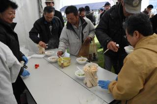 開門と同時にJBC駐車場が満車となるほど、多くのお客様にご来場いただき、石狩鍋のふるまい・新米おにぎり試食会・ひだか特産市・キッチンカー・原木なめこ「日高の沢味」を使用したなめこ汁の無料ふるまいなどをお楽しみいただいたほか、騎手のサイン入りグッズやホッカイドウ競馬オリジナルグッズが当たる「お楽しみ抽選会」が行われました。