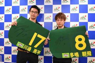 ※応募の際は、住所・氏名・年齢・職業・電話番号・ご希望の賞品名(『多嶋朝飛選手ゼッケン』または『川邉亮平選手ゼッケン』)をご記入願います。