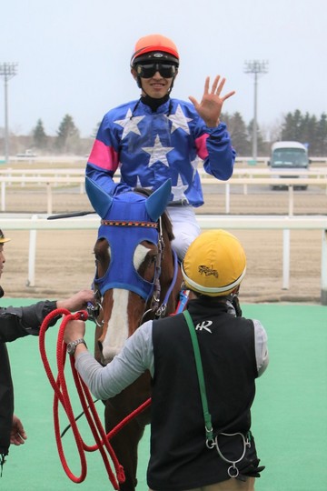 平成31年4月24日(水)、門別競馬 第4競走で阿部 龍(あべ りゅう)騎手(角川 秀樹きゅう舎所属)がニットウダリア号に騎乗し、3,806戦目で500勝を達成しました。