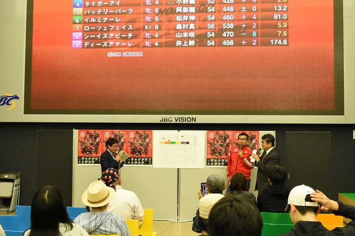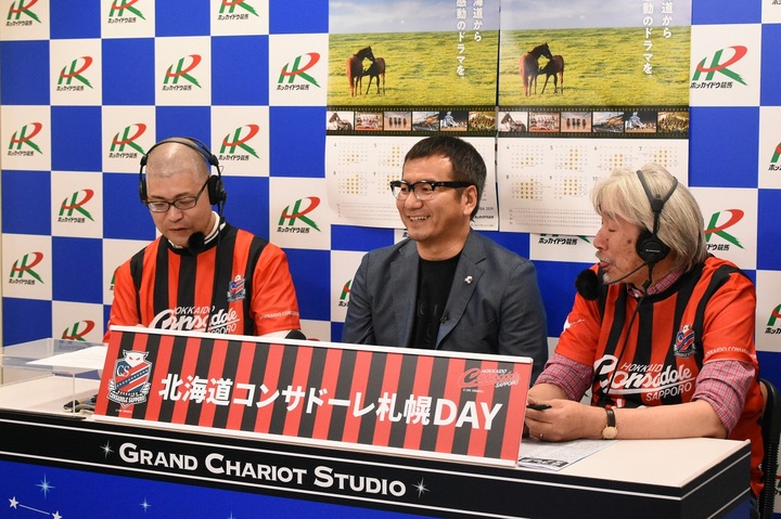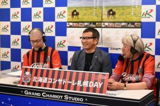 第1競走からメインレースの協賛競走「北海道コンサドーレ札幌特別」まで、本日の全12競走すべてに「北海道コンサドーレ札幌」にちなんだ名称が付けられたほか、北海道コンサドーレ札幌のグッズが当たる抽選会や、野々村芳和社長をゲストに迎えた予想トークステージなどを行いました。