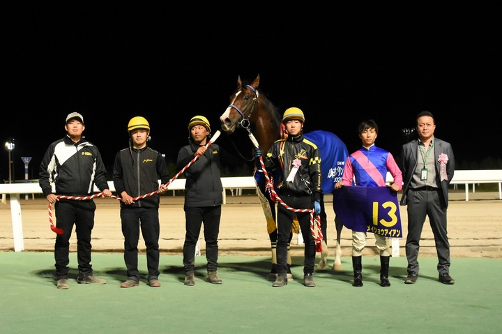 また、騎乗した落合玄太騎手は重賞2勝目(いずれもメイショウアイアン、ダートグレード競走は初勝利)となり、田中淳司調教師は昨年のエーデルワイス賞以来のダートグレード勝利となりました。
