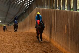 「少しレース間は開いていますが、デキは上々です。これまで1,000メートルしか経験していませんが、1,200メートルの方が向くはずです。あとは芝をこなしてくれれば....。」