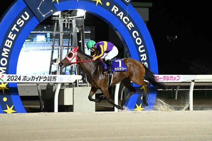 本日のメイン競走、JRA認定競走 UHB杯 第24回 フローラルカップ〔H3〕(ダノンプレミアム賞)[ダート1,600m(内) 晴・良]が行われ、3番人気ゼロアワーが2着エスカティアに6馬身差をつけて優勝しました(タイム:1.43.6)。