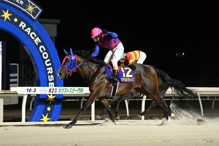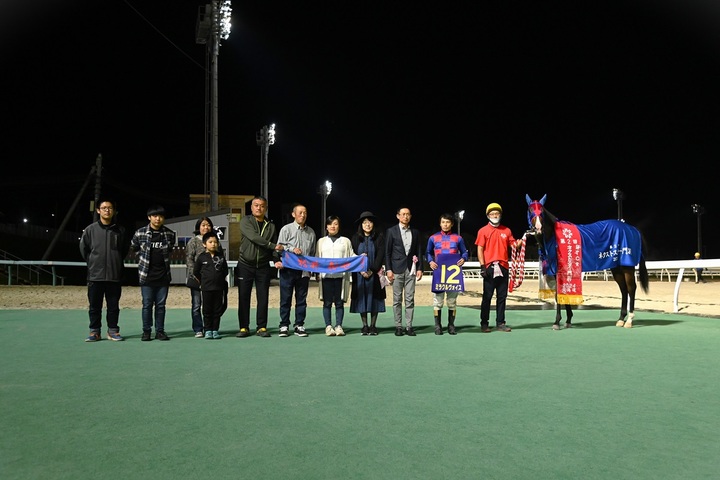また、同馬を管理する佐久間雅貴調教師と騎乗した松井伸也騎手はともにネクストスター門別初勝利となりました。