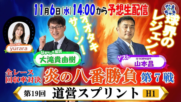題して「炎の八番勝負~なまちゃき解説者VSゲストによる全レース回収率対決~」