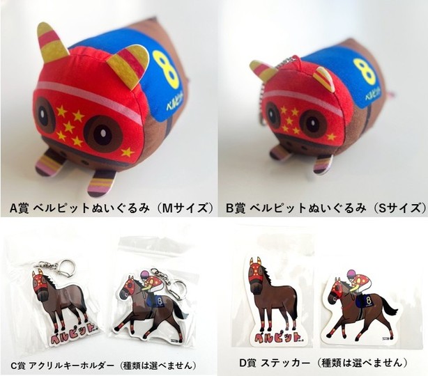 コロコロケイバ様と厚賀古川牧場様のご提供により、ベルピットのグッズをプレゼントいたします。ご希望の方は専用の応募フォームよりご応募ください。皆様のご応募をお待ちしております。