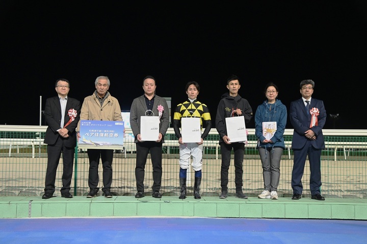 また、同馬を管理する田中淳司調教師はヒダカソウカップ3勝目、騎乗した落合玄太騎手はヒダカソウカップ2勝目となりました。