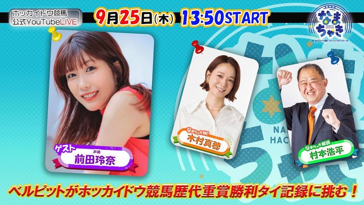 YouTube【公式】 ホッカイドウ競馬チャンネル「なまちゃきLIVE」のゲスト紹介(9月24日、25日)