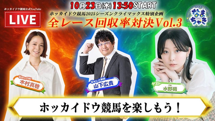 YouTube【公式】 ホッカイドウ競馬チャンネル「なまちゃきLIVE」のゲスト紹介(10月23日)