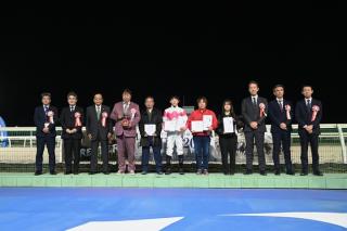 本日のメイン競走、GDJ2025農林水産大臣賞典 報知新聞社杯 第28回 エーデルワイス賞(JpnⅢ)[ダート1,200m(外) 晴・稍重]が行われ、1番人気リュウノフライトが2着トウカイマシェリに11/2馬身差をつけて優勝しました(タイム:1.12.7)。